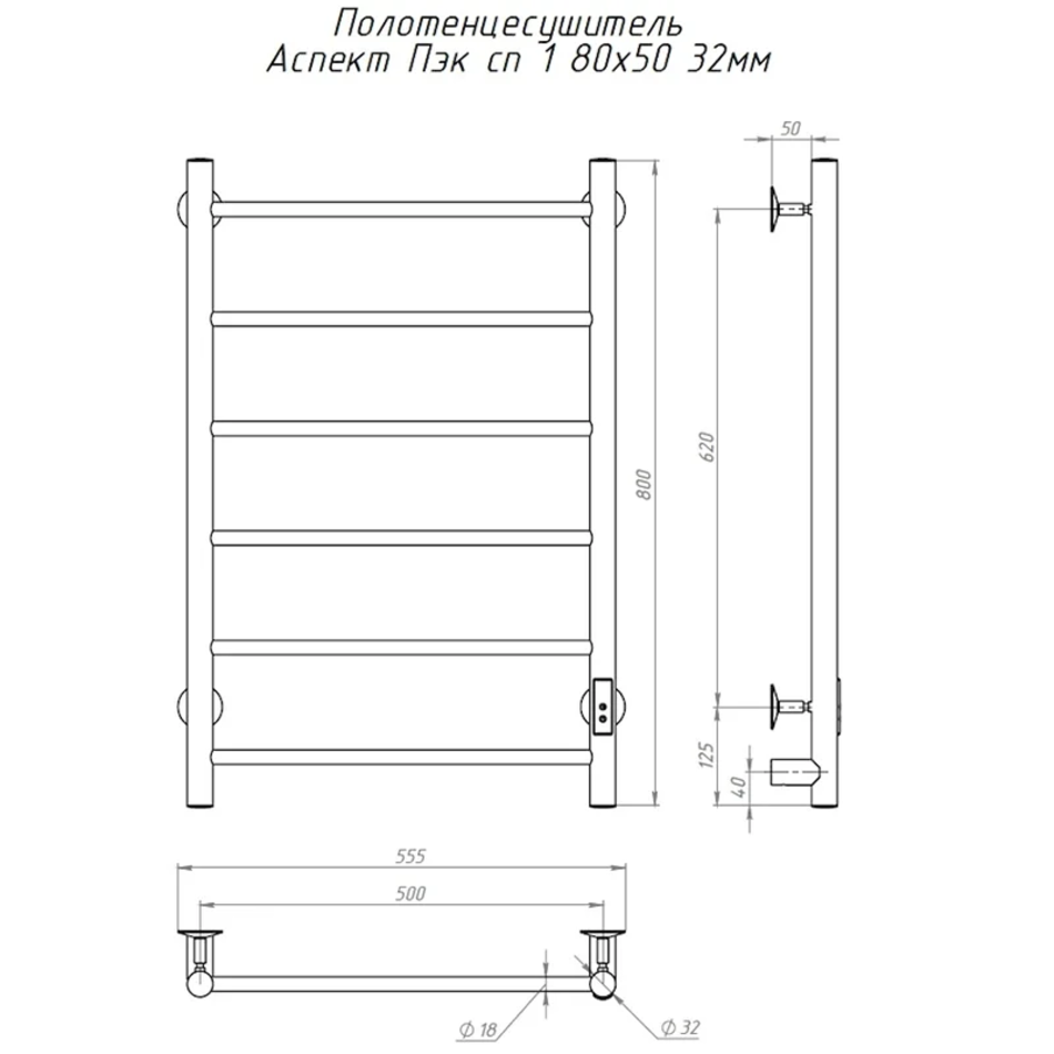 Полотенцесушитель Тругор Аспект Пэк сп 1 80х50 32 мм, ширина 50 см, высота 80 см, хром