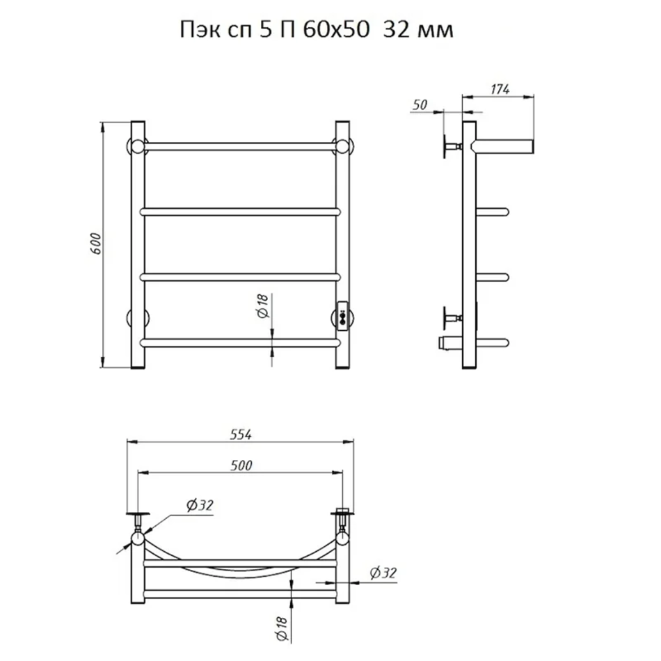 Полотенцесушитель Тругор Пэк сп 5 П 60х50 32 мм, ширина 50 см, высота 60 см, хром