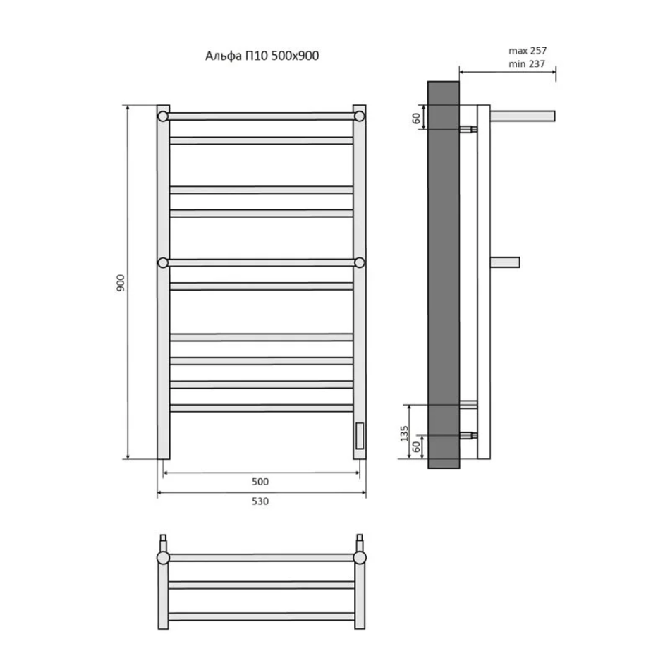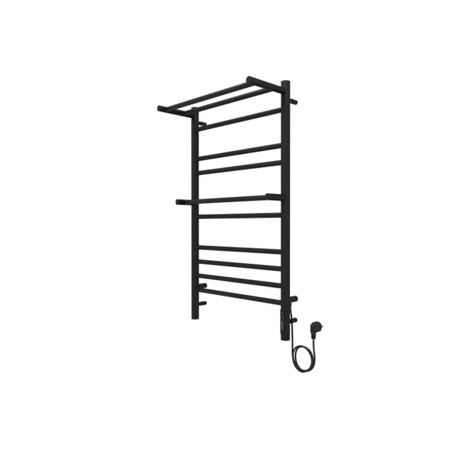 Полотенцесушитель электрический Aquatek Альфа П10, 50/90, с полкой, ширина 50 см, высота 90 см, диммер справа, черный муар, AQ EL RRP1090BL