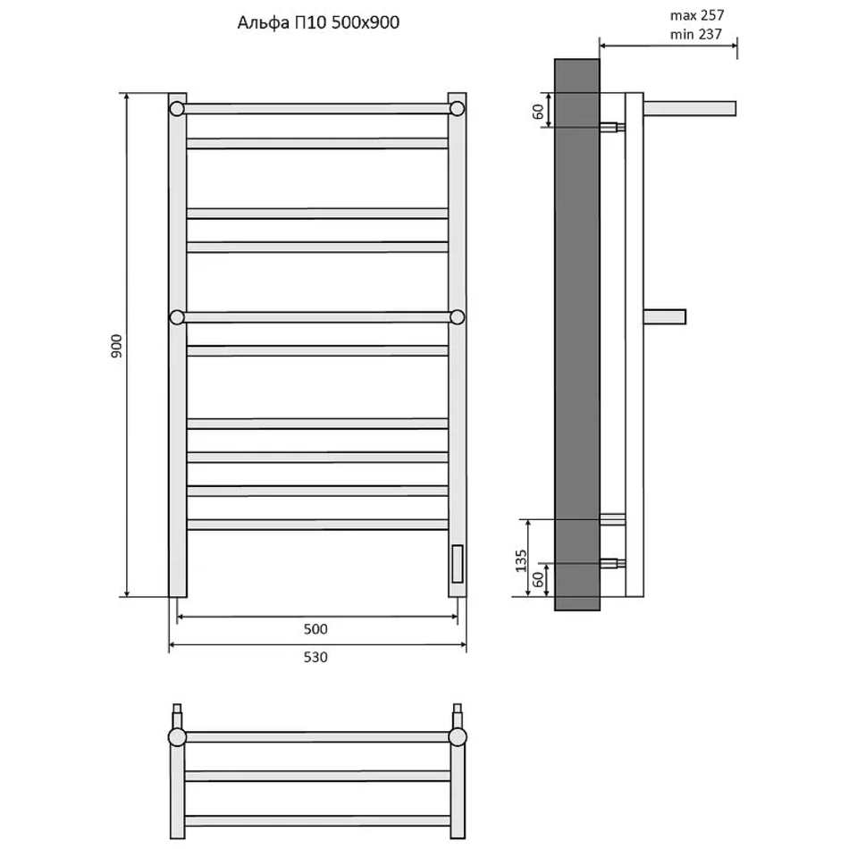 Полотенцесушитель электрический Aquatek Альфа П10, 50/90, с полкой, ширина 50 см, высота 90 см, диммер справа, хром, AQ EL RRP1090CH