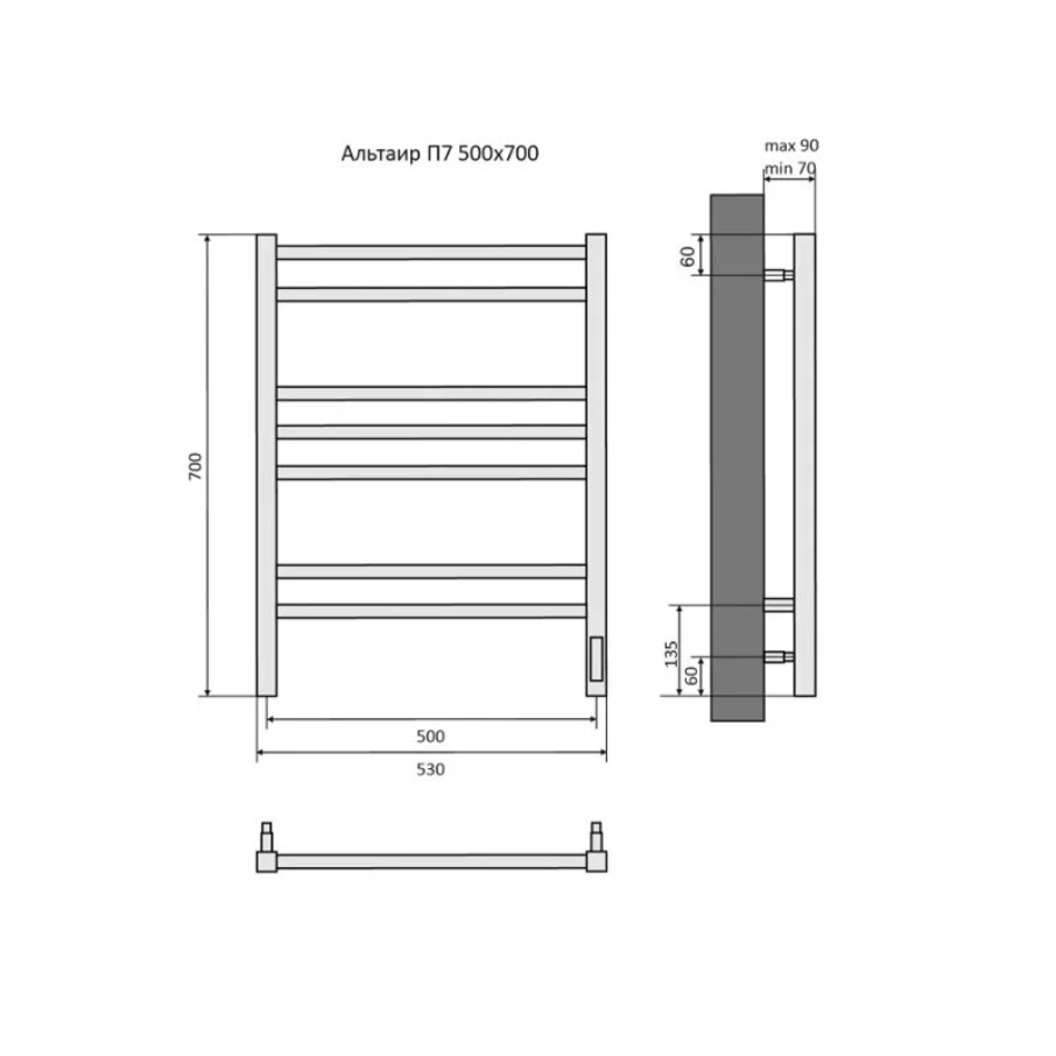 Полотенцесушитель электрический Aquatek Альтаир П7, 50/70, ширина 50 см, высота 70 см, диммер справа, черный муар, AQ EL KP0770BL