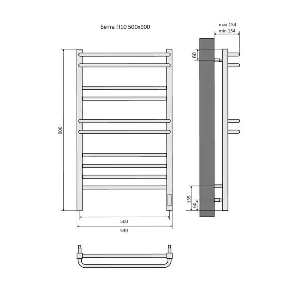 Полотенцесушитель электрический Aquatek Бетта П10, 50/90, ширина 50 см, высота 90 см, диммер справа, черный муар, AQ EL KRC1090BL