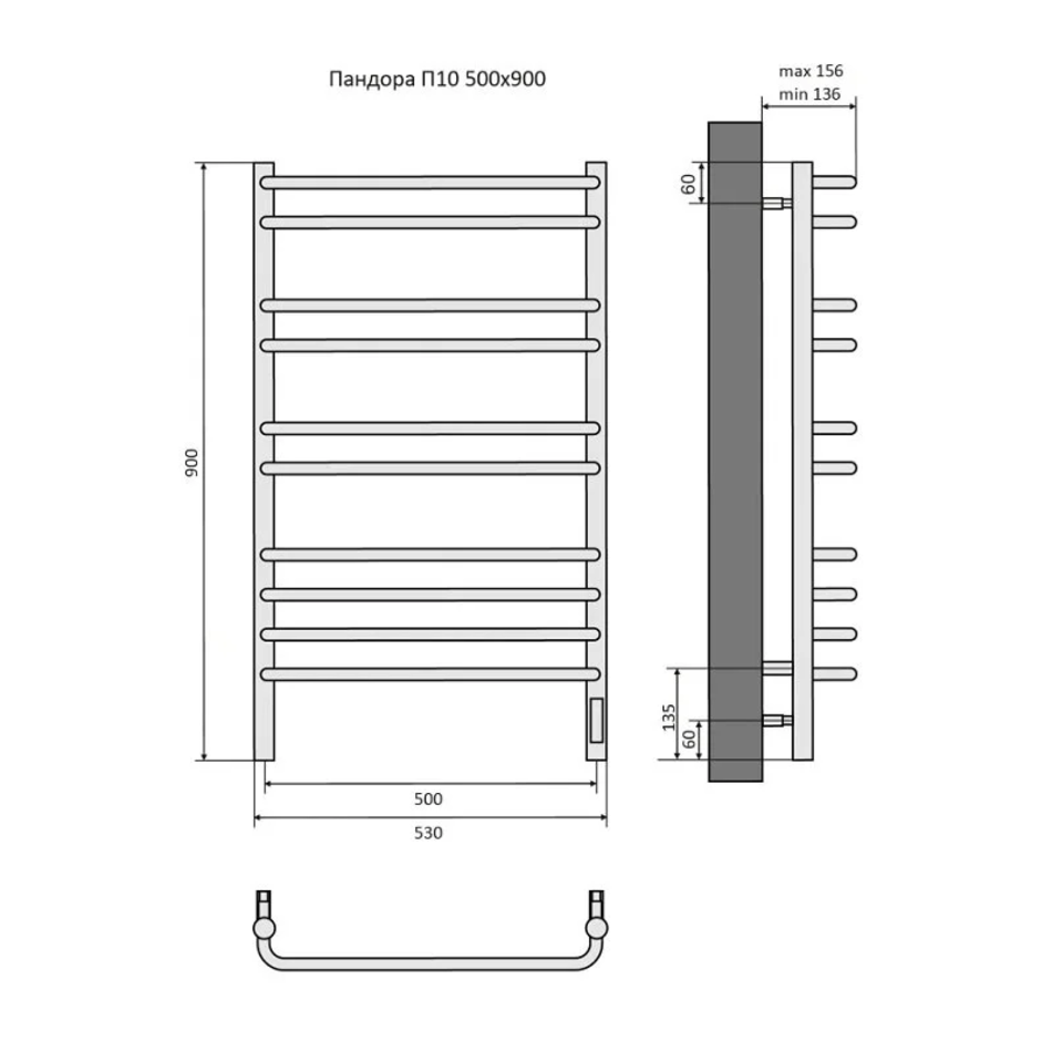 Полотенцесушитель электрический Aquatek Пандора П10, 50/90, ширина 50 см, высота 90 см, диммер справа, черный муар, AQ EL RPC1090BL