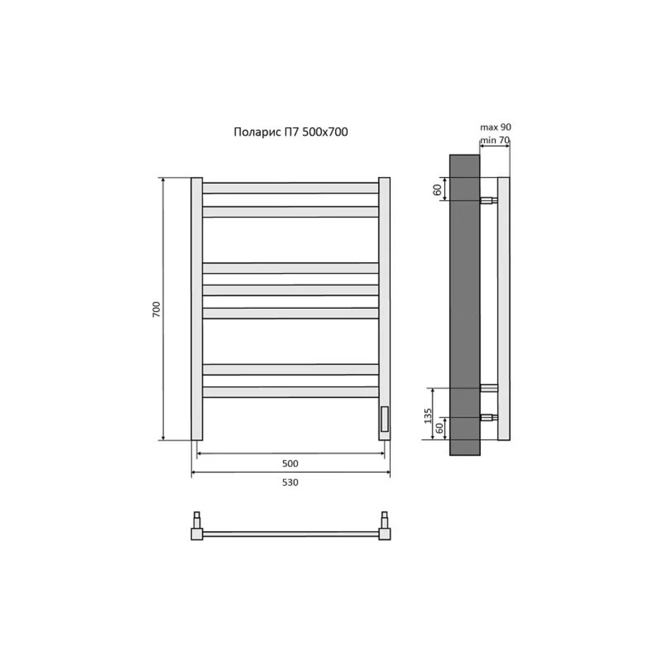 Полотенцесушитель электрический Aquatek Поларис П7, 50 х 70, ширина 50 см, высота 70 см, диммер справа, цвет черный муар, AQ EL KO0770BL