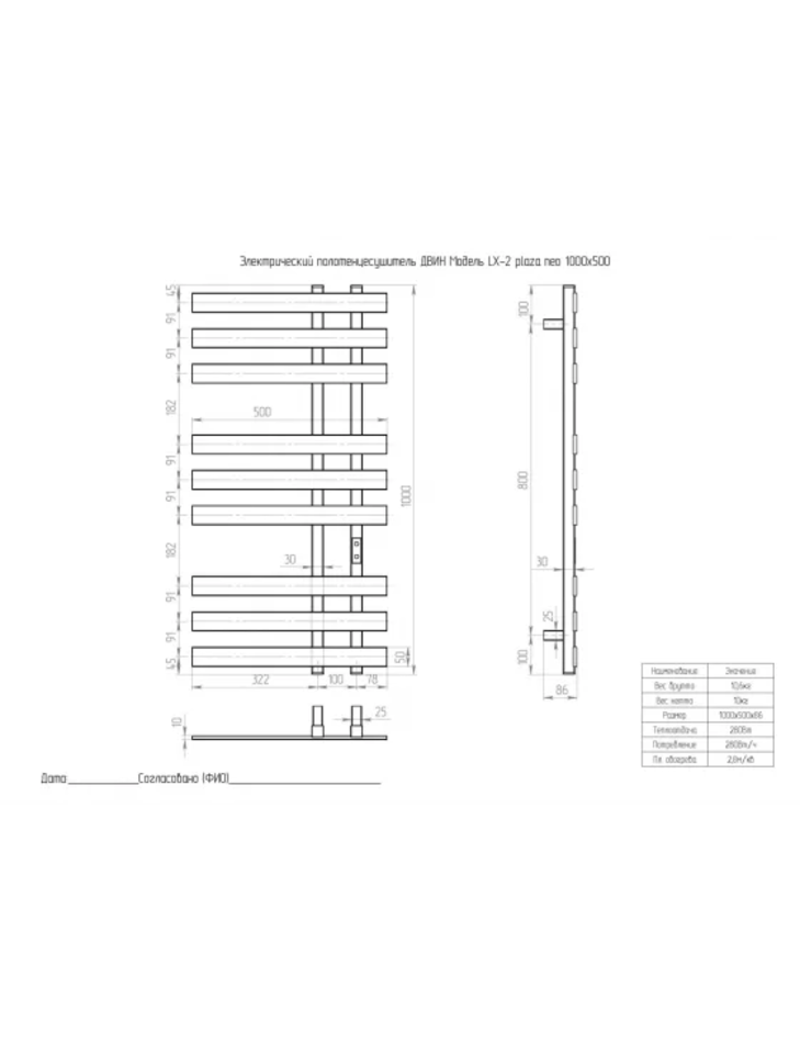 Полотенцесушитель электрический Двин LX-2 plaza neo 100/50, 4657812418385, ширина 50 см, высота 100 см, диммер справа, графит