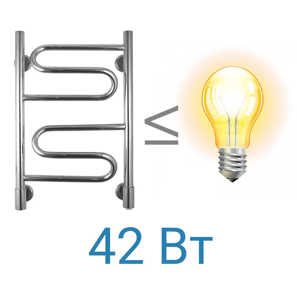 Полотенцесушитель электрический Energy Bravo 60x40 мощностью 42 Вт экономичен в эксплуатации и сопоставим по энергозатратам с электрической лампочкой.