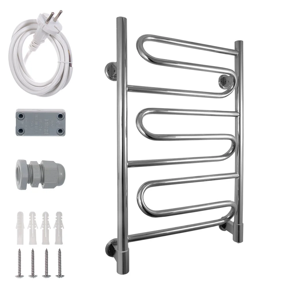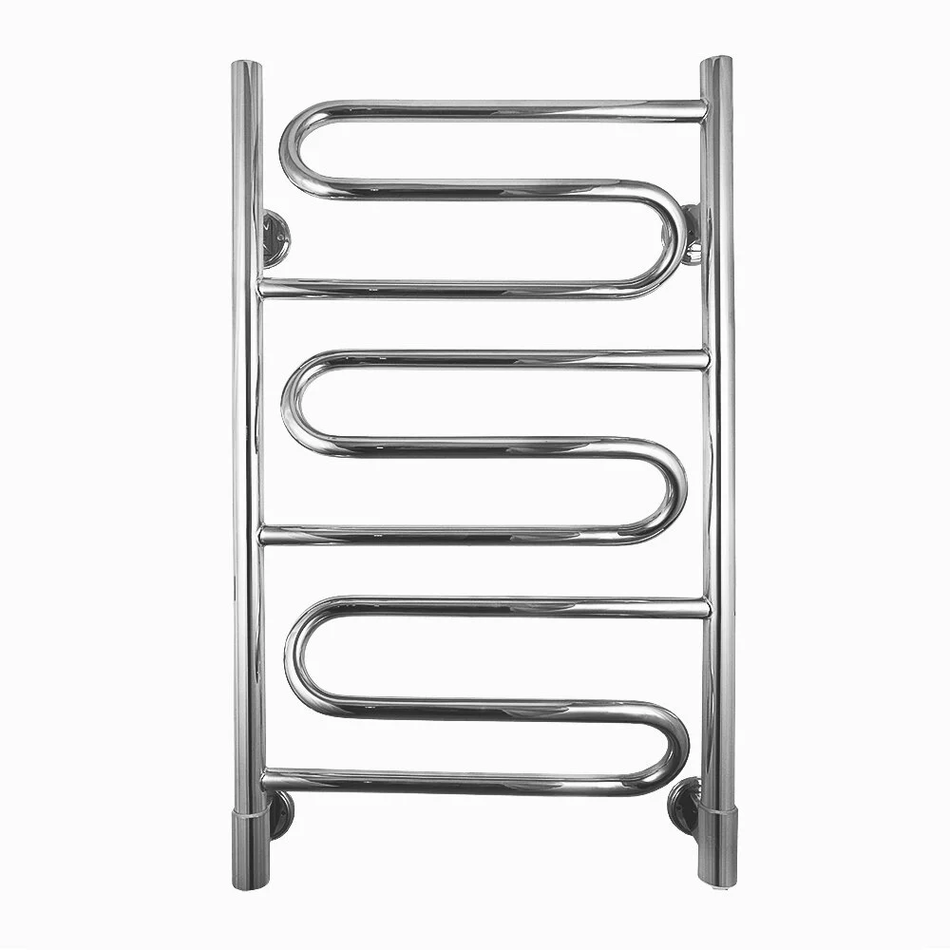 Energy Bravo 80x50 – электрический полотенцесушитель с тремя выпуклыми стационарными греющими секциями в виде змеевика, выполненный из высококачественной пищевой нержавеющей стали, предназначен для просушки изделий из ткани и дополнительного обогрева душевых, ванных комнат, санузлов.