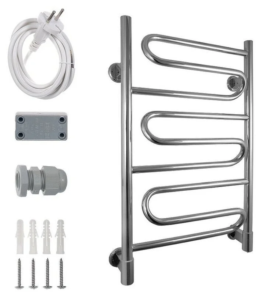 Нагревательный элемент прибора - греющий кабель в изоляции из кремнийсодержащей резины. Может быть подключен как скрытым, так и наружным способом. Подключение производится через правую нижнюю стойку. Если развернуть модель на 180°, подключение будет осуществляться через левую верхнюю стойку. Оснащён влагозащищенным выключателем с индикатором работы.