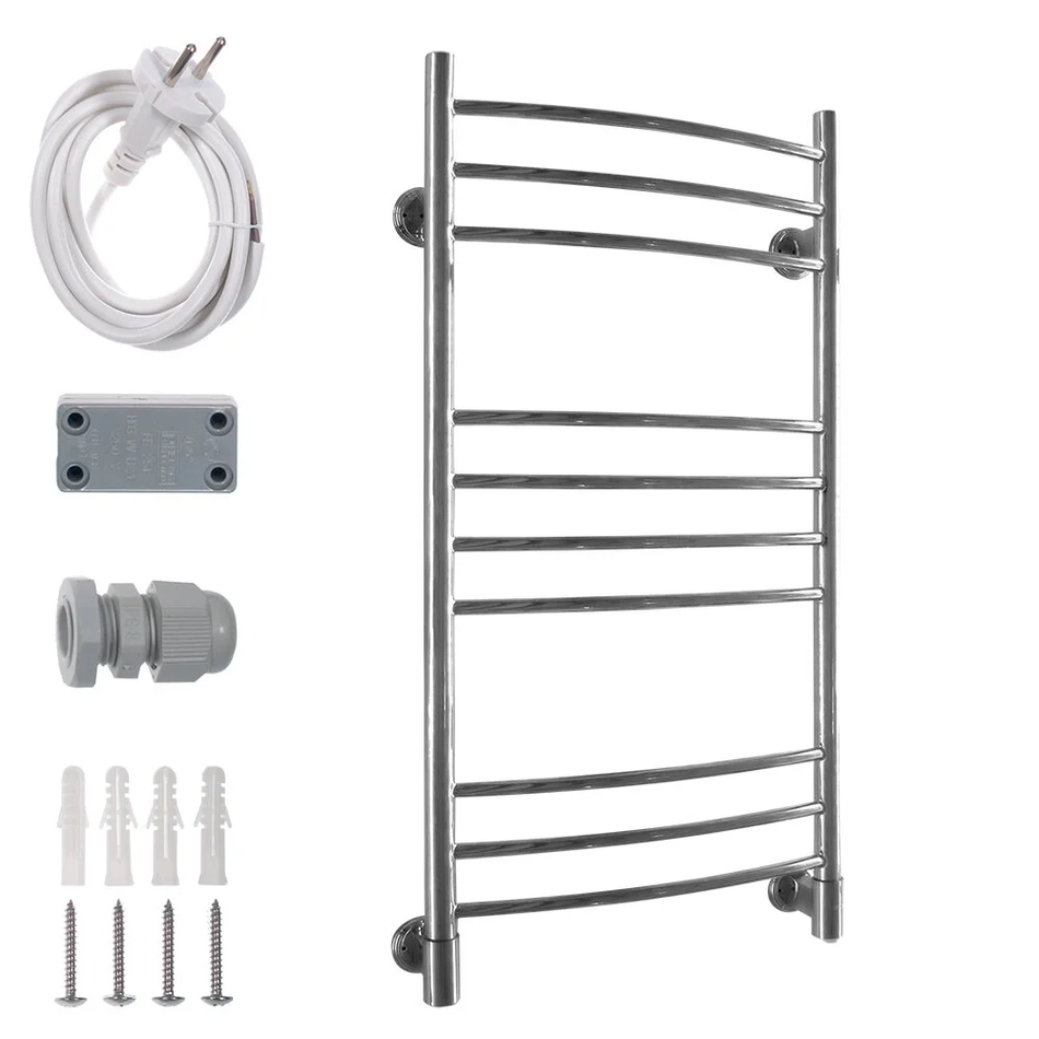 Energy Ergo 100x50 – полотенцесушитель электрический стационарный типа лесенка с шестью выпуклыми перемычками круглого сечения, выполненный из высококачественной пищевой нержавеющей стали, предназначен для дополнительного обогрева ванных комнат, душевых, санузлов и просушки вещей из ткани.