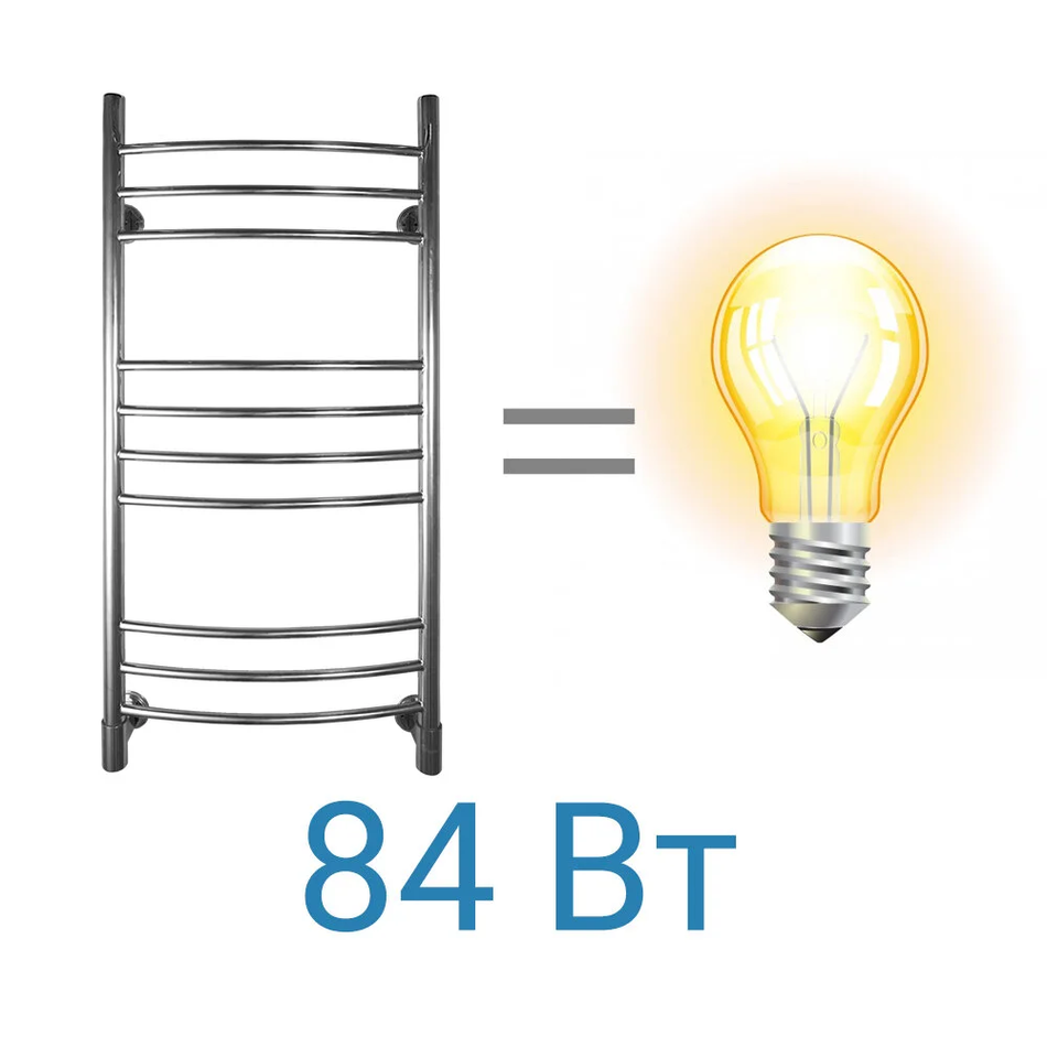 Электрический полотенцесушитель Energy Ergo 100x50 мощностью 84 Вт экономичен в эксплуатации и сопоставим по энергозатратам с электрической лампочкой.