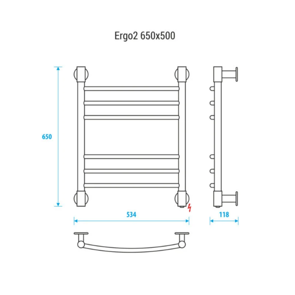 Energy Ergo2 650x500 – электрический стационарный полотенцесушитель-лесенка с шестью выпуклыми перемычками круглого сечения, выполненный из высококачественной пищевой нержавеющей стали. Для увеличения функциональности и полезной площади изделия рекомендуется приобрести полку Energy Modus2 500.