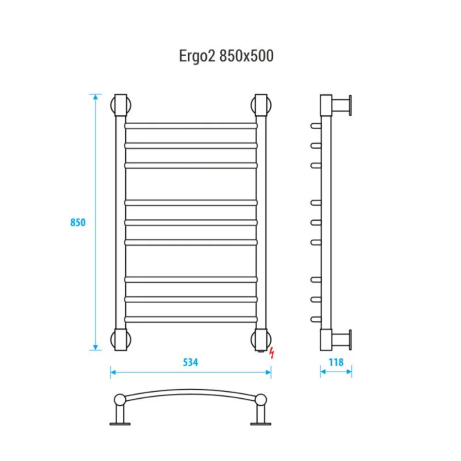 Energy Ergo2 850x500 – электрический стационарный полотенцесушитель-лесенка с девятью выпуклыми перемычками круглого сечения, выполненный из высококачественной пищевой нержавеющей стали. Для увеличения функциональности и полезной площади изделия рекомендуется приобрести полку Energy Modus2 500.