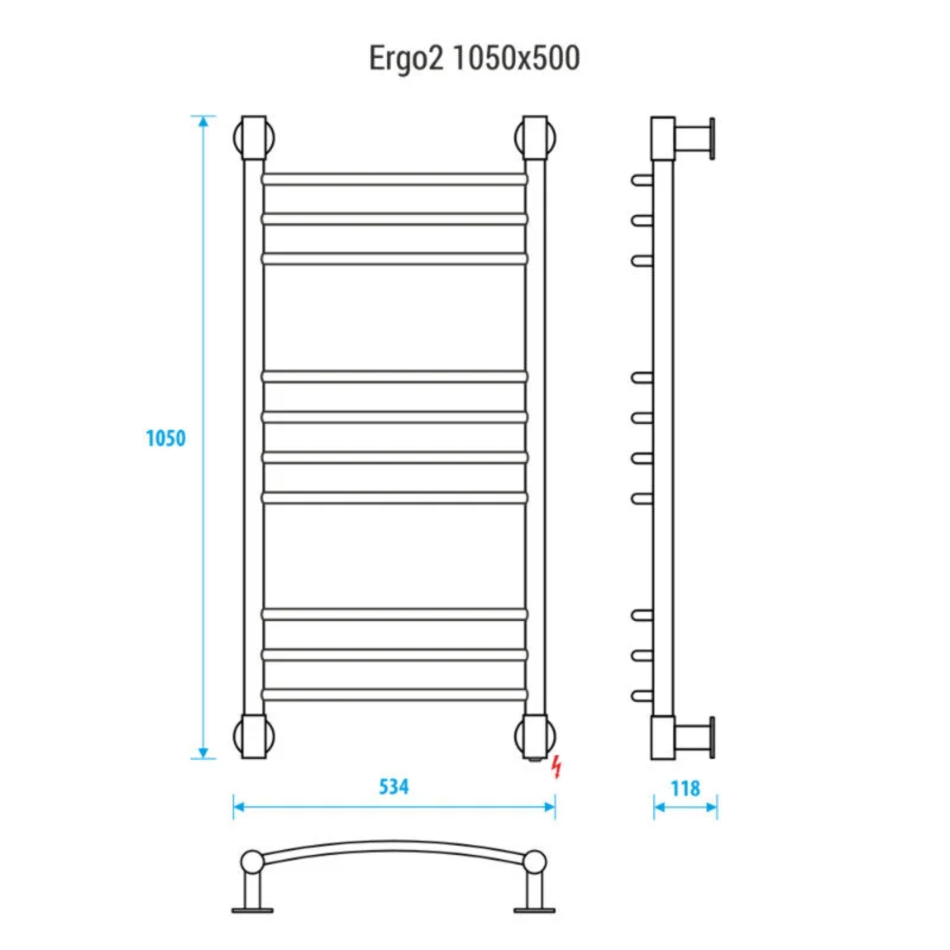Полотенцесушитель электрический Energy Ergo2 EETRERGO210550R903M, ширина 50 см, высота 105 см, кнопка справа, цвет белый матовый