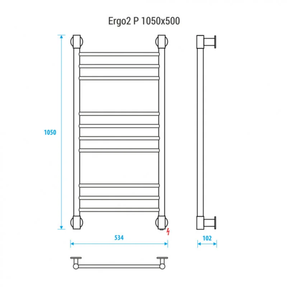 Energy Ergo2 P 1050x500 – электрический стационарный полотенцесушитель-лесенка с деcятью прямыми перемычками круглого сечения, выполненный из высококачественной пищевой нержавеющей стали.