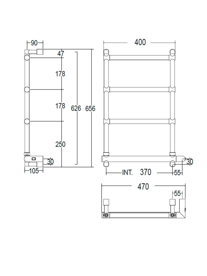 - Полотенцесушитель имеет скрытое электрическое соединение (BOX)