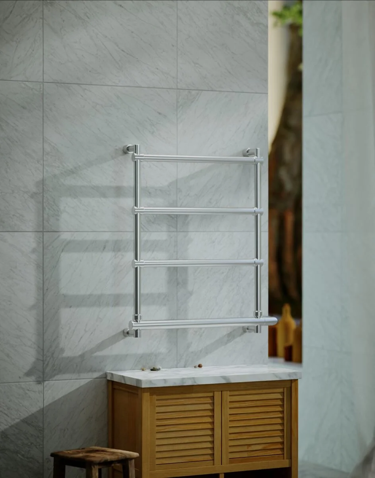 Электрический полотенцесушитель Margaroli изготовлен из специальной сантехнической латуни, не требует высокого качества воды, материал не реагирует на высокую кислотность воды и отлично противостоит коррозии. Применяется в ванных комнатах для сушки полотенец и мелкого белья.