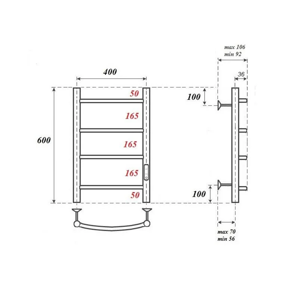 Полотенцесушитель электрический Point Афина П4, PN04846, 40 x 60 см, диммер справа, цвет хром