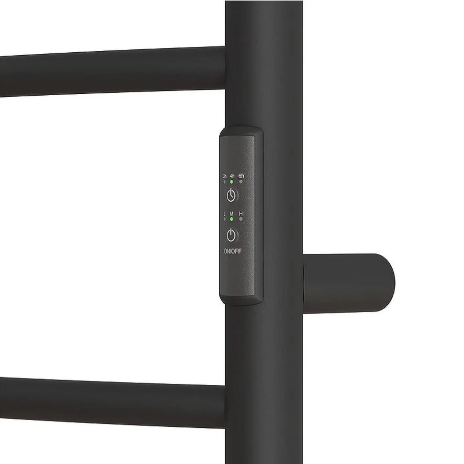 Полотенцесушитель оборудован блоком управления с таймером на 3 режима (2, 4 ,6 часов) и возможностью регулировки температуры (3 температурных режима). Блок управления расположен на правой стойке. Подключение к электросети осуществляется при помощи кабель-вилки или скрытого подключения, которое позволяет легко и просто убрать видимые провода.