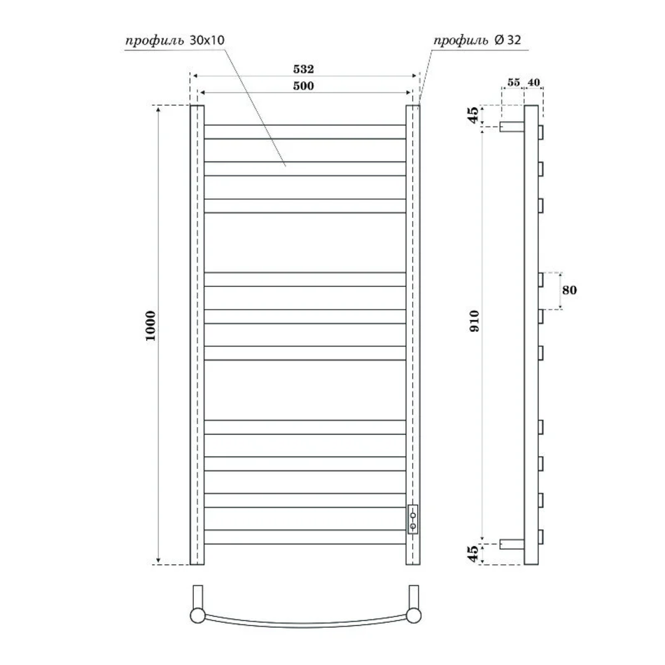 Полотенцесушитель электрический Point Антея PN17850B, ширина 50 см, высота 100 см, диммер справа, цвет черный
