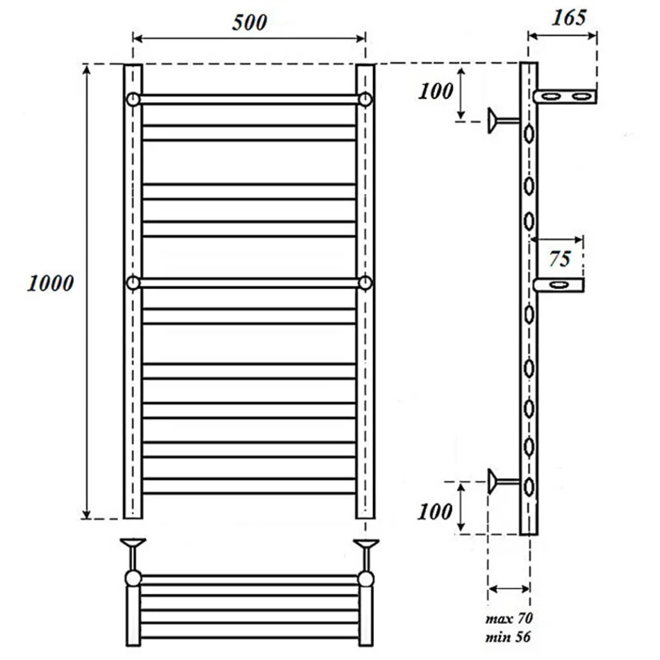 Полотенцесушитель - 1 шт, кронштейны для крепления к стене - 4 шт, кран Маевского - 1 шт, заглушка декоративная - 1 шт, Электротэн – 1 шт, паспорт/гарантийный талон - 1 шт