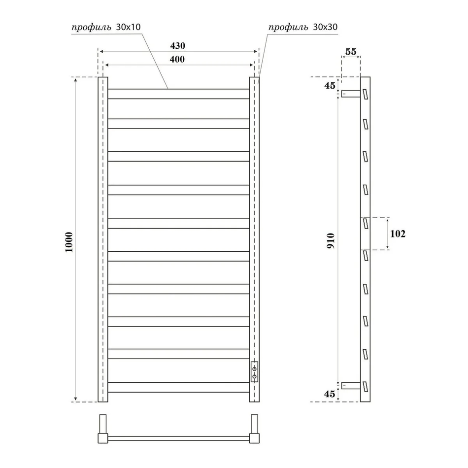 Полотенцесушитель электрический Point Атлант PN18840B П10, ширина 40 см, высота 100 см, диммер справа, черный