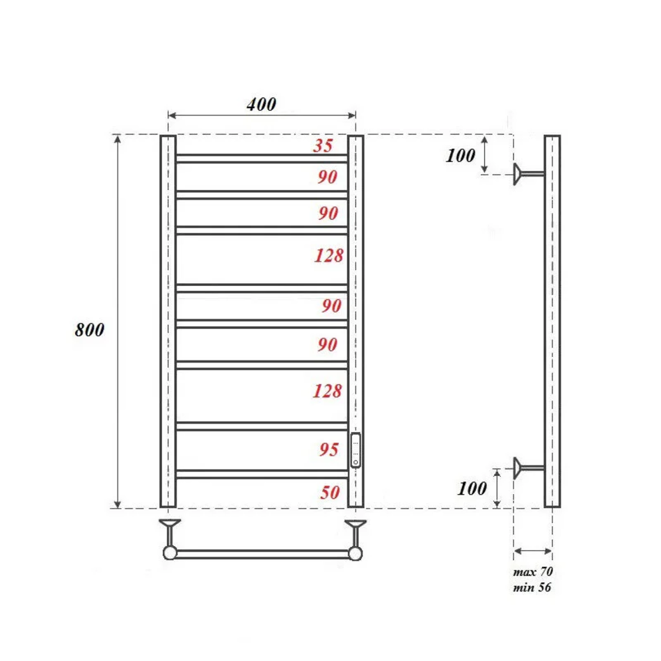 Полотенцесушитель электрический Point Аврора, П8, ширина 40 см, высота 80 см, диммер справа, черный, PN10848B