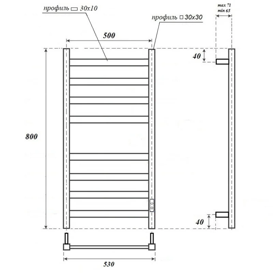 Полотенцесушитель электрический Point Меркурий П8, ширина 50 см, высота 80 см, диммер справа, хром, PN83858