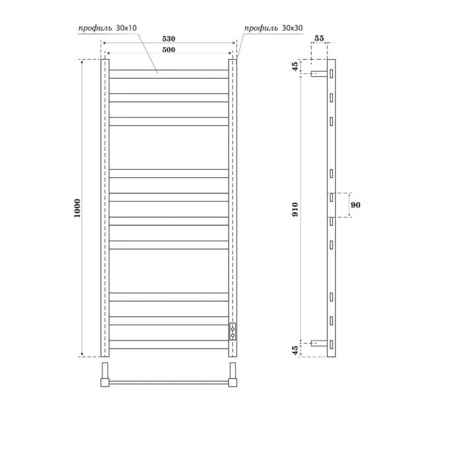 Полотенцесушитель электрический Point Меркурий PN83850GR, ширина 50 см, высота 100 см, диммер справа, цвет графит премиум