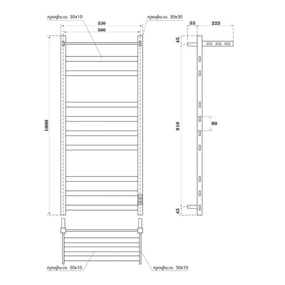 Комплектация: Полотенцесушитель - 1 шт, кронштейны для крепления к стене - 3 шт, сетевой кабель - 1 шт, комплект скрытого подключения - 1 шт, паспорт/гарантийный талон - 1 шт