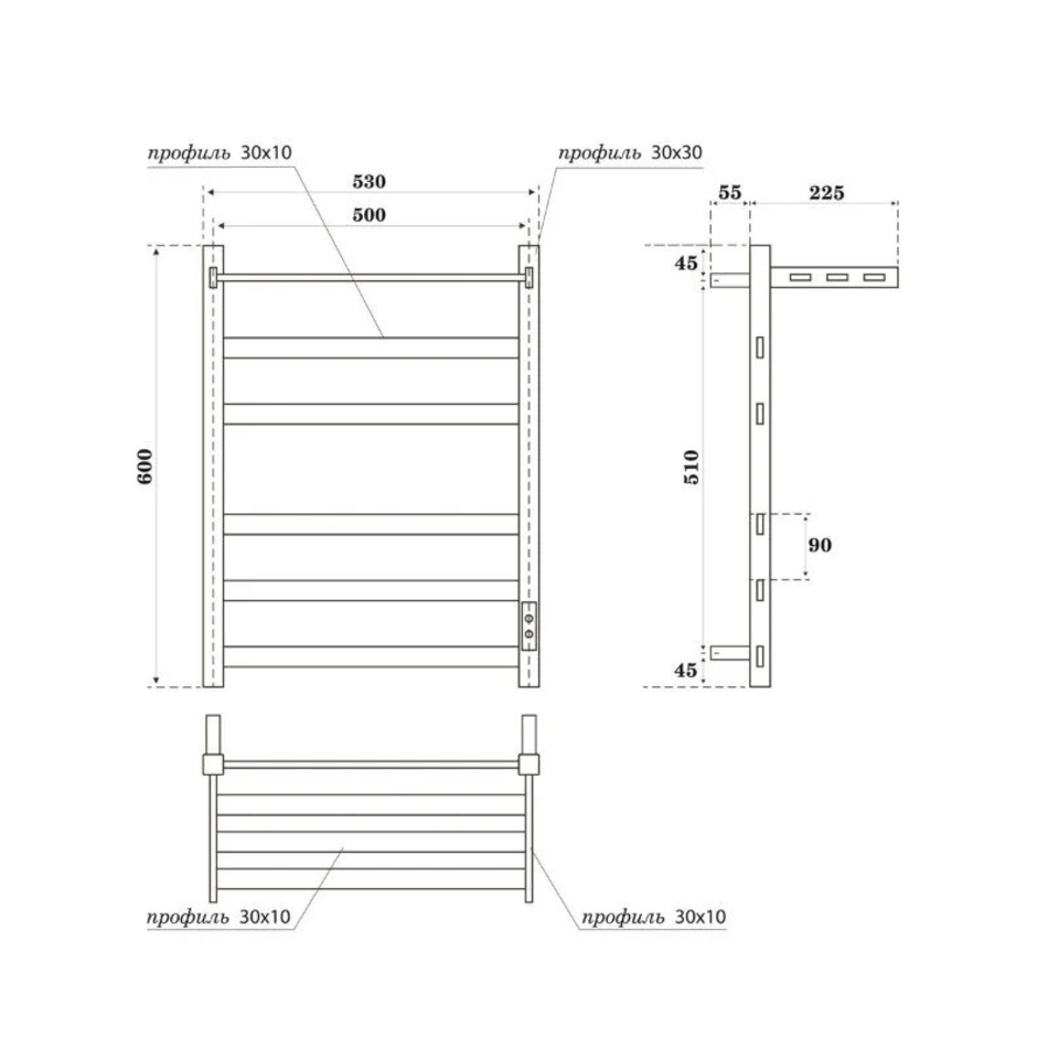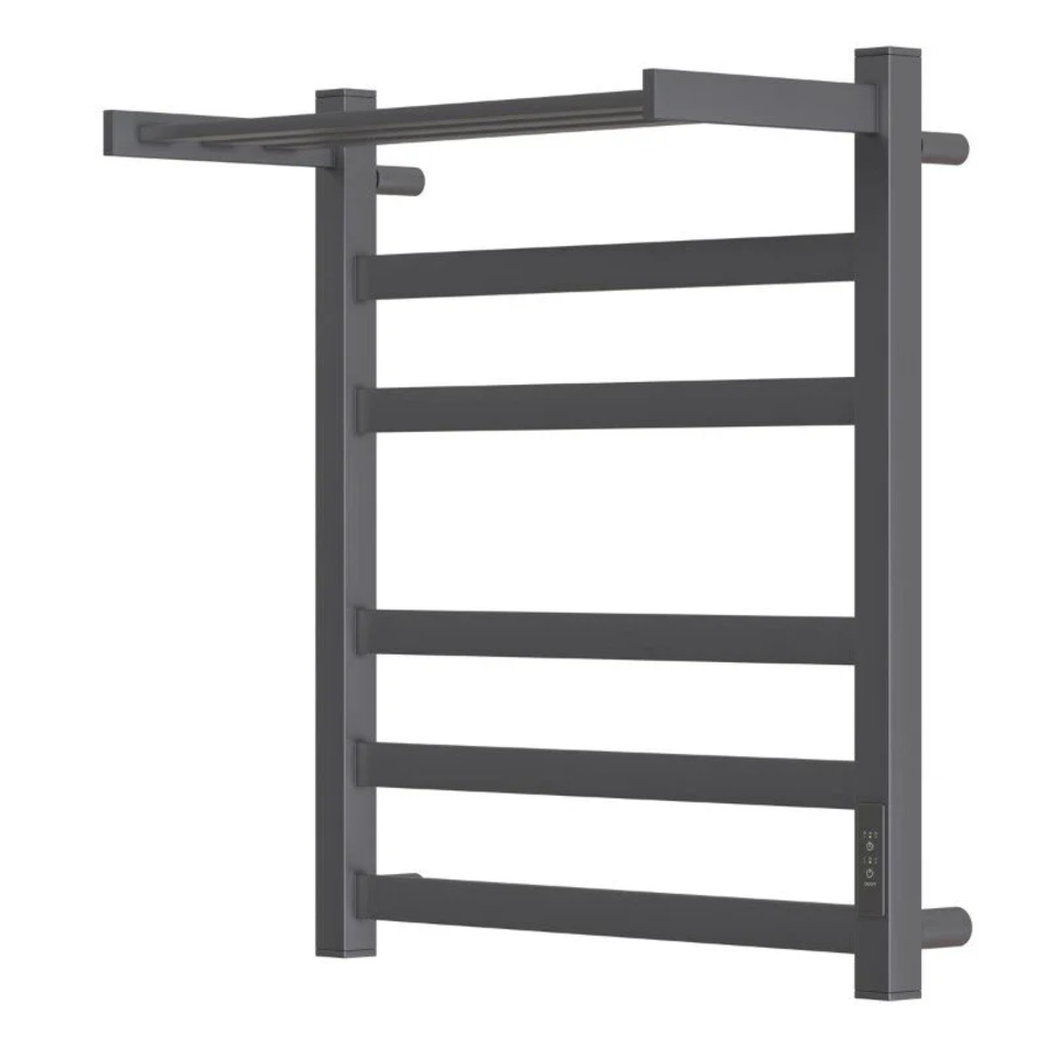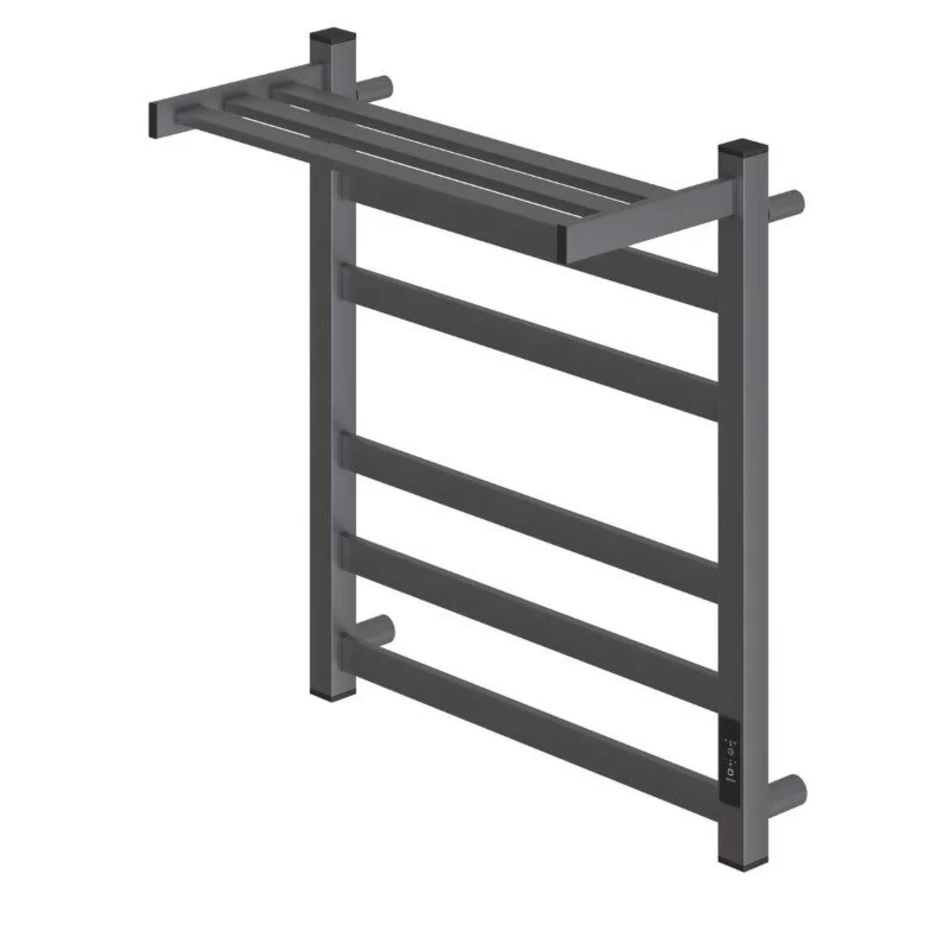 Полотенцесушитель электрический Point Меркурий PN83856PGR, ширина 50 см, высота 60 см, диммер справа, с полкой, цвет графит премиум