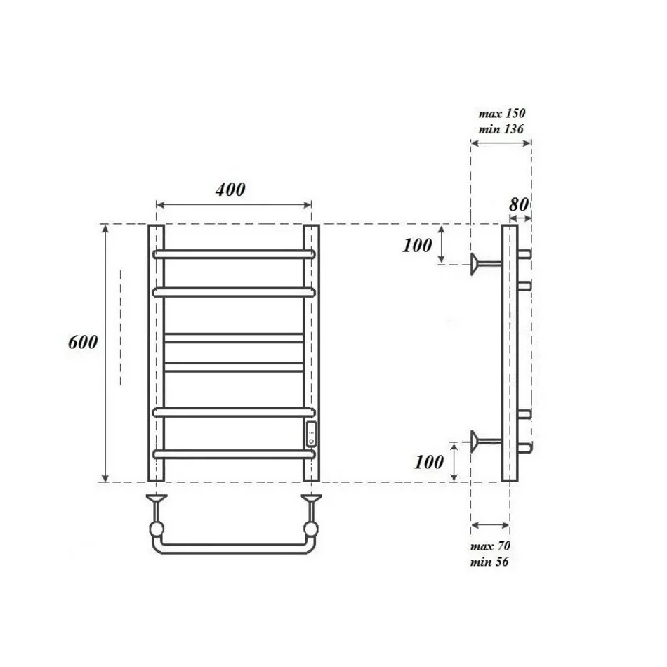 Полотенцесушитель электрический Point Сатурн, П6, ширина 40 см, высота 60 см, диммер справа, хром, PN90846