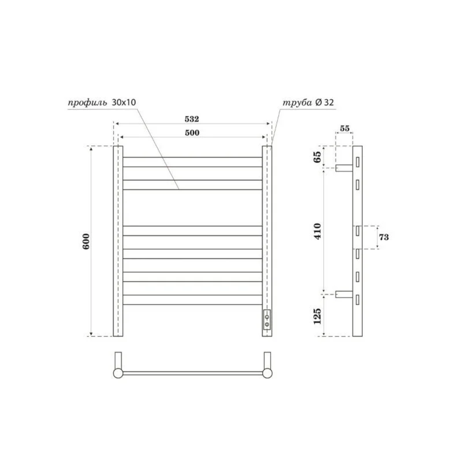 Полотенцесушитель электрический Point Селена PN16856W, ширина 50 см, высота 60 см, диммер справа, цвет белый
