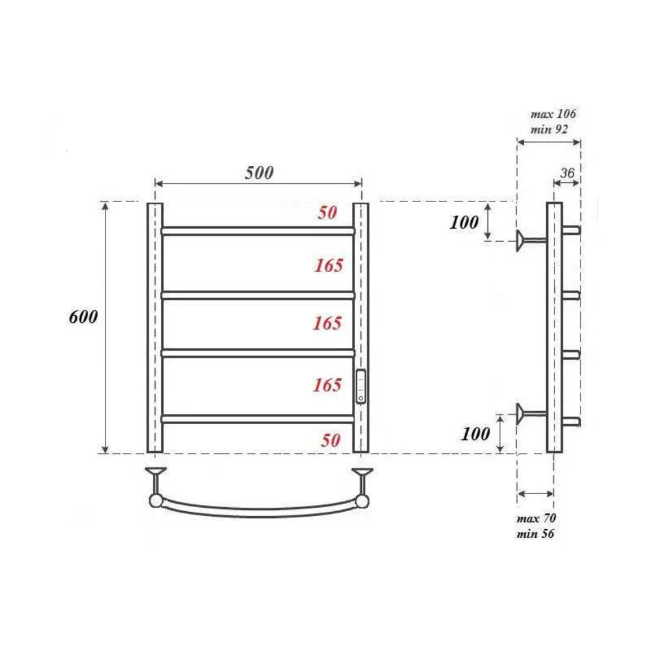 Полотенцесушитель электрический Point Серия 04, П4, ширина 50 см, высота 60 см, диммер справа, хром, PN04856