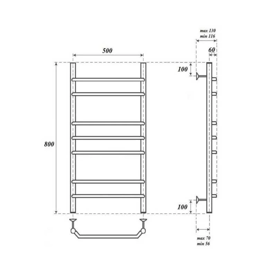 Полотенцесушитель электрический Point Серия 07, П7, ширина 50 см, высота 80 см, ТЭН слева/справа, хром, PN07158E