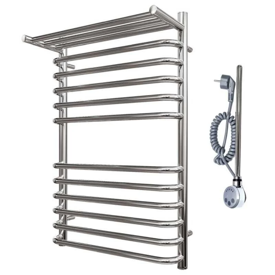 Полотенцесушитель электрический Point Серия 09, П11, ширина 50 см, высота 80 см, ТЭН слева/справа, с полкой, хром, PN09158SPE