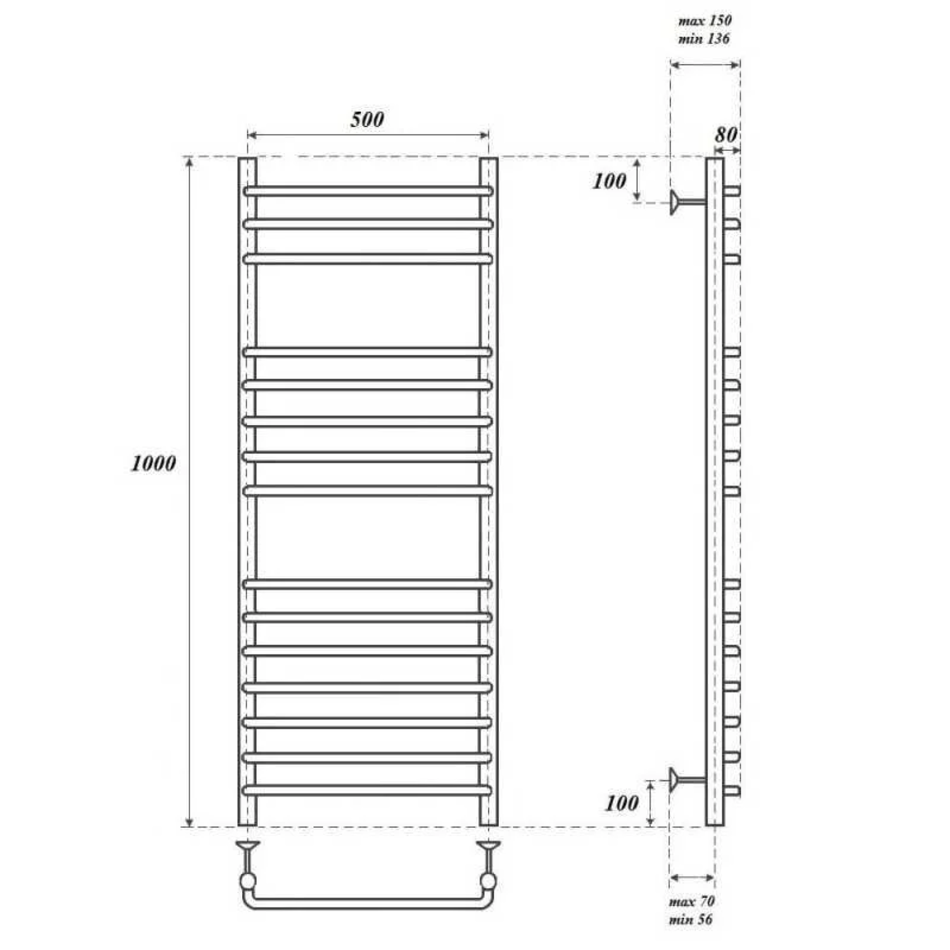 Полотенцесушитель электрический Point Серия 09, П15, ширина 50 см, высота 100 см, ТЭН слева/справа, хром, PN09150SE