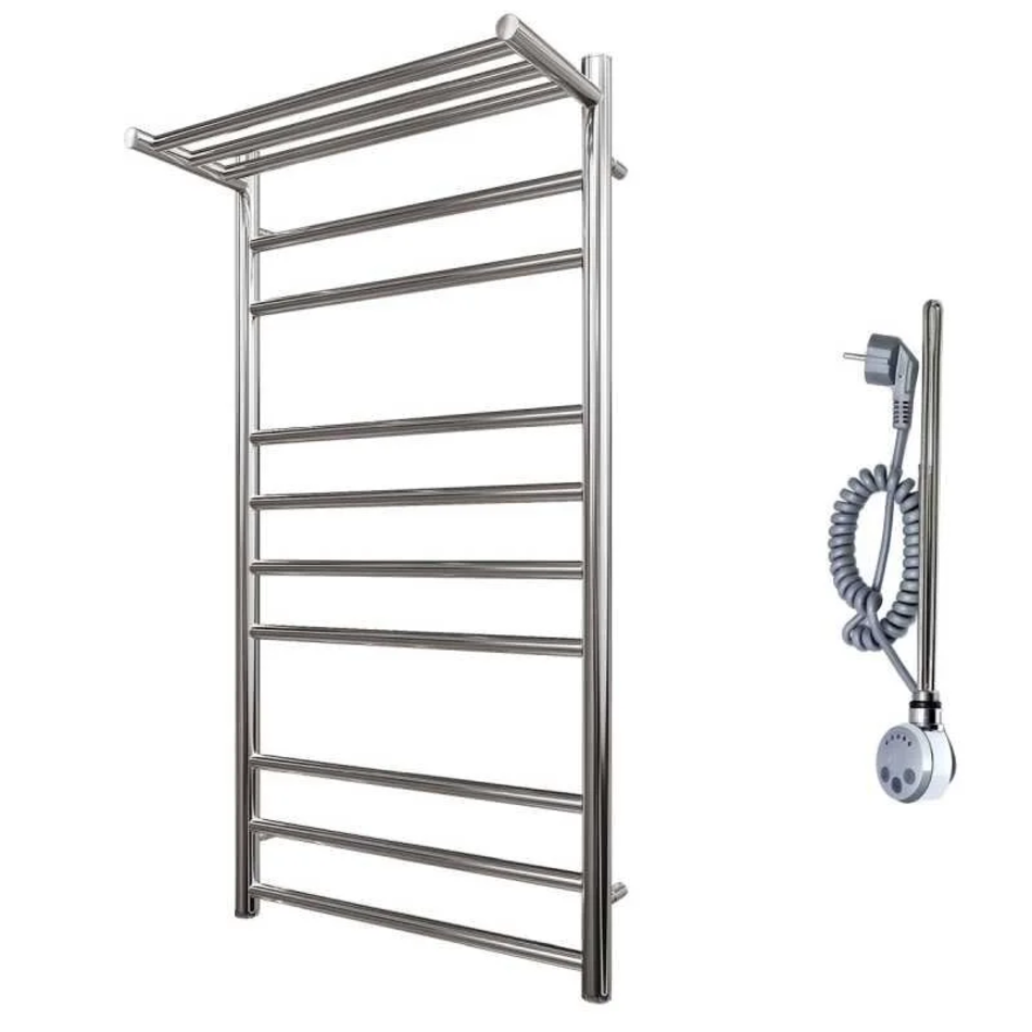Полотенцесушитель электрический Point Серия 10, П9, ширина 50 см, высота 100 см, ТЭН слева/справа, с полкой, хром, PN10150PE