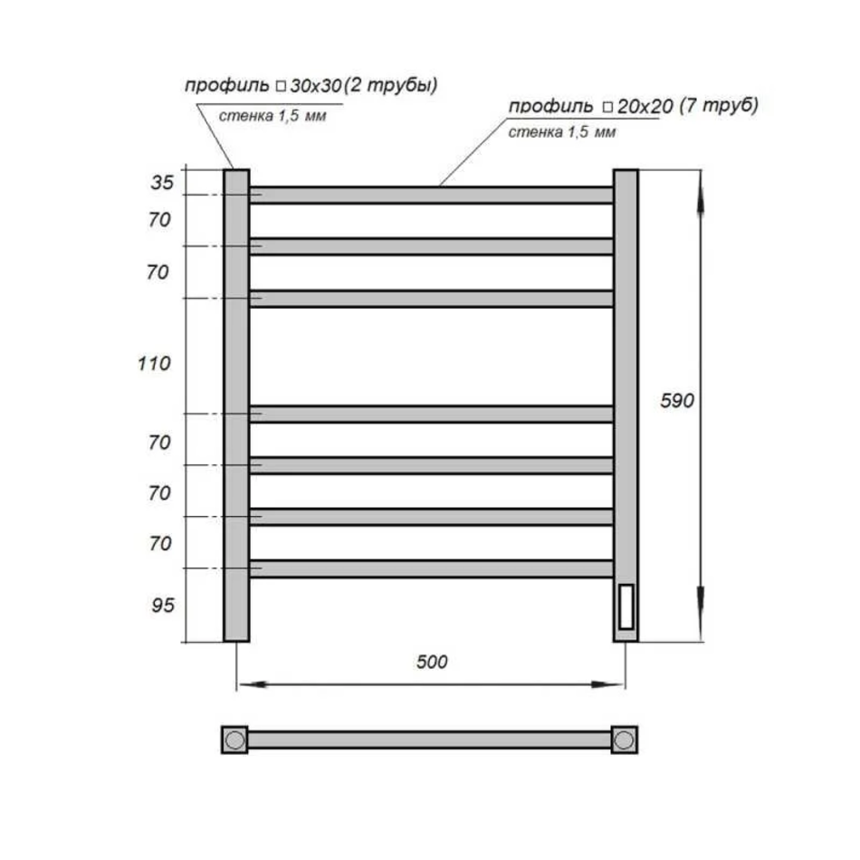 Полотенцесушитель электрический Point Серия 71, П7, ширина 50 см, высота 59 см, диммер справа, черный, PN71856B