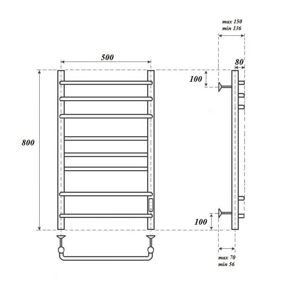 Полотенцесушитель электрический Point Серия 90, П8, ширина 50 см, высота 80 см, диммер справа, белый, PN90858W
