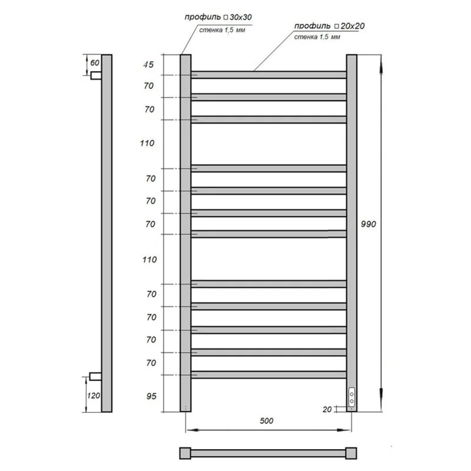 Полотенцесушитель электрический Point Вега П12, ширина 50 см, высота 100 см, хром, PN71850