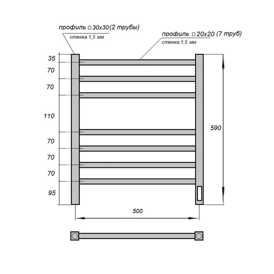 Полотенцесушитель электрический Point Вега, П7, ширина 50 см, высота 60 см, диммер справа, белый, PN71856W