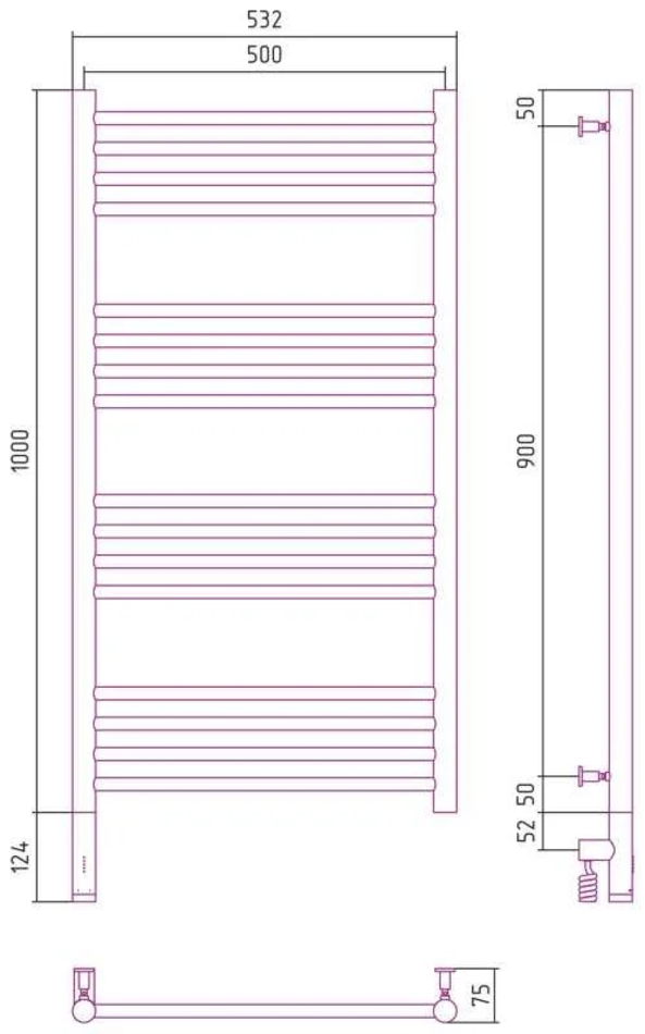Полотенцесушитель электрический Сунержа Богема 3.0 1000х500, хром, подключение слева, 00-5804-1050