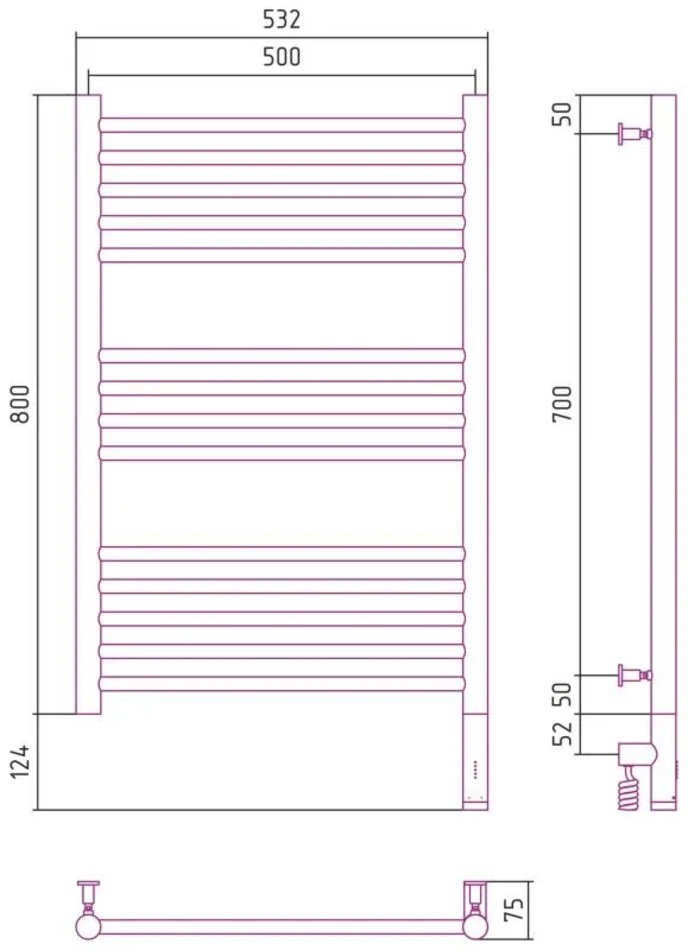 Полотенцесушитель электрический Сунержа Богема 3.0 прямая 800 x 500, ширина 53.2 см, высота 92.4 см, правый, хром, 00-5805-8050