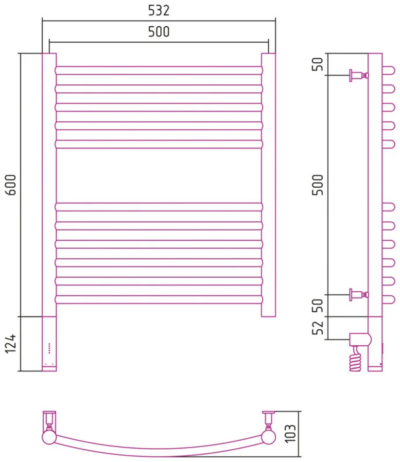 Полотенцесушитель электрический Сунержа Богема 3.0 выгнутая 600х500, ширина 53.2 см, высота 72.4 см, хром, МЭМ левый, 00-5802-6050