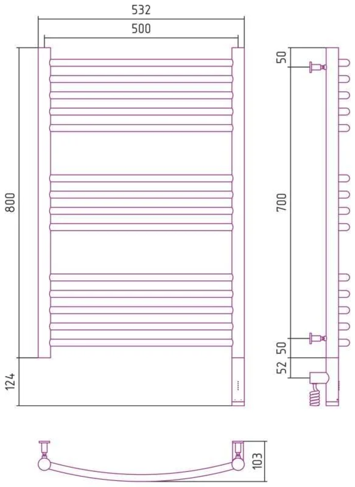 Полотенцесушитель электрический Сунержа Богема 3.0 выгнутая 800х500, ширина 53.2 см, высота 92.4 см, белый матовый, МЭМ правый, 30-5803-8050