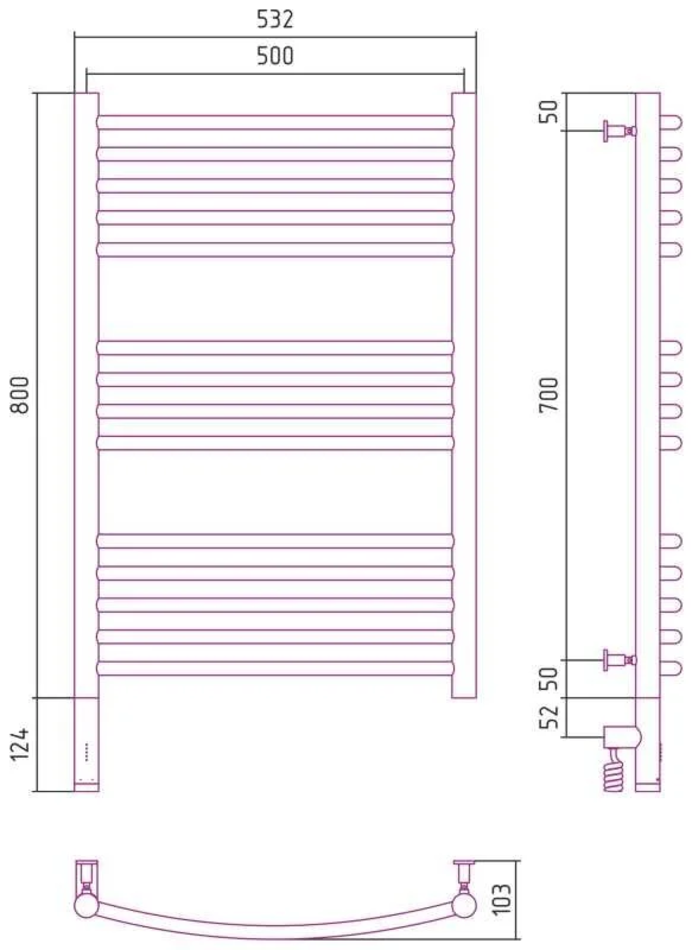 Полотенцесушитель электрический Сунержа Богема 3.0 выгнутая 800х500, ширина 53.2 см, высота 92.4 см, белый матовый, МЭМ левый, 30-5802-8050