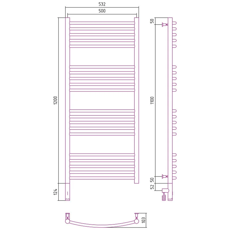 Полотенцесушитель электрический Сунержа Богема 3.0, высота 120 см, ширина 50 см, диммер слева, 00-5802-1250