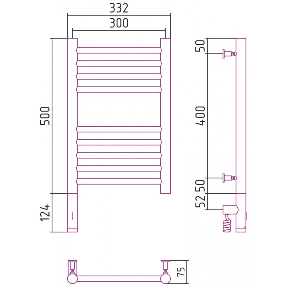 Полотенцесушитель электрический Сунержа Богема 3.0, высота 50 см, ширина 30 см, диммер слева/справа, цвет состаренная латунь, 051-5804-5030/051-5805-5030