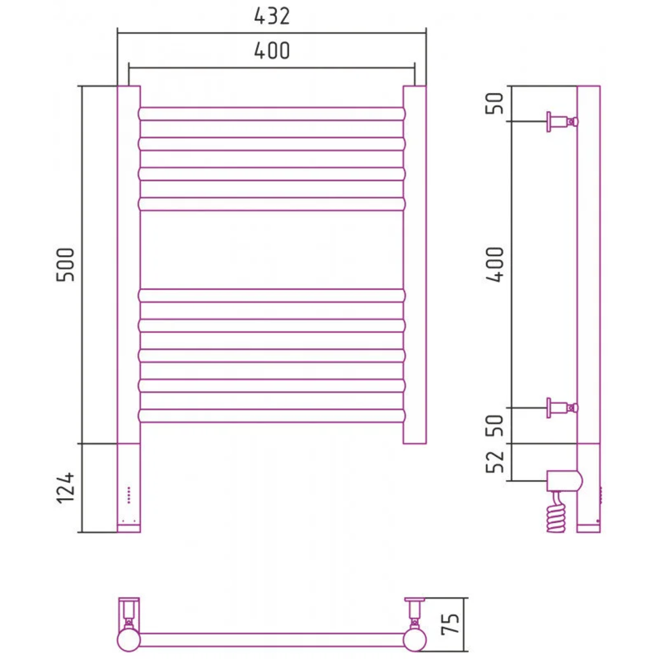 Полотенцесушитель электрический Сунержа Богема 3.0, высота 50 см, ширина 40 см, диммер слева/справа, цвет золото, 03-5804-5040/03-5805-5040