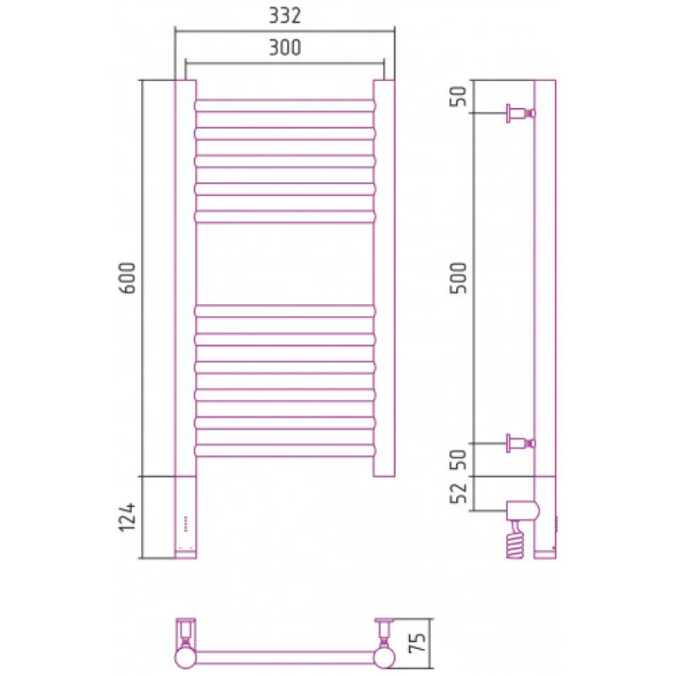 Полотенцесушитель электрический Сунержа Богема 3.0, высота 60 см, ширина 30 см, диммер слева/справа, цвет матовая шампань, 022-5804-6030/022-5805-6030